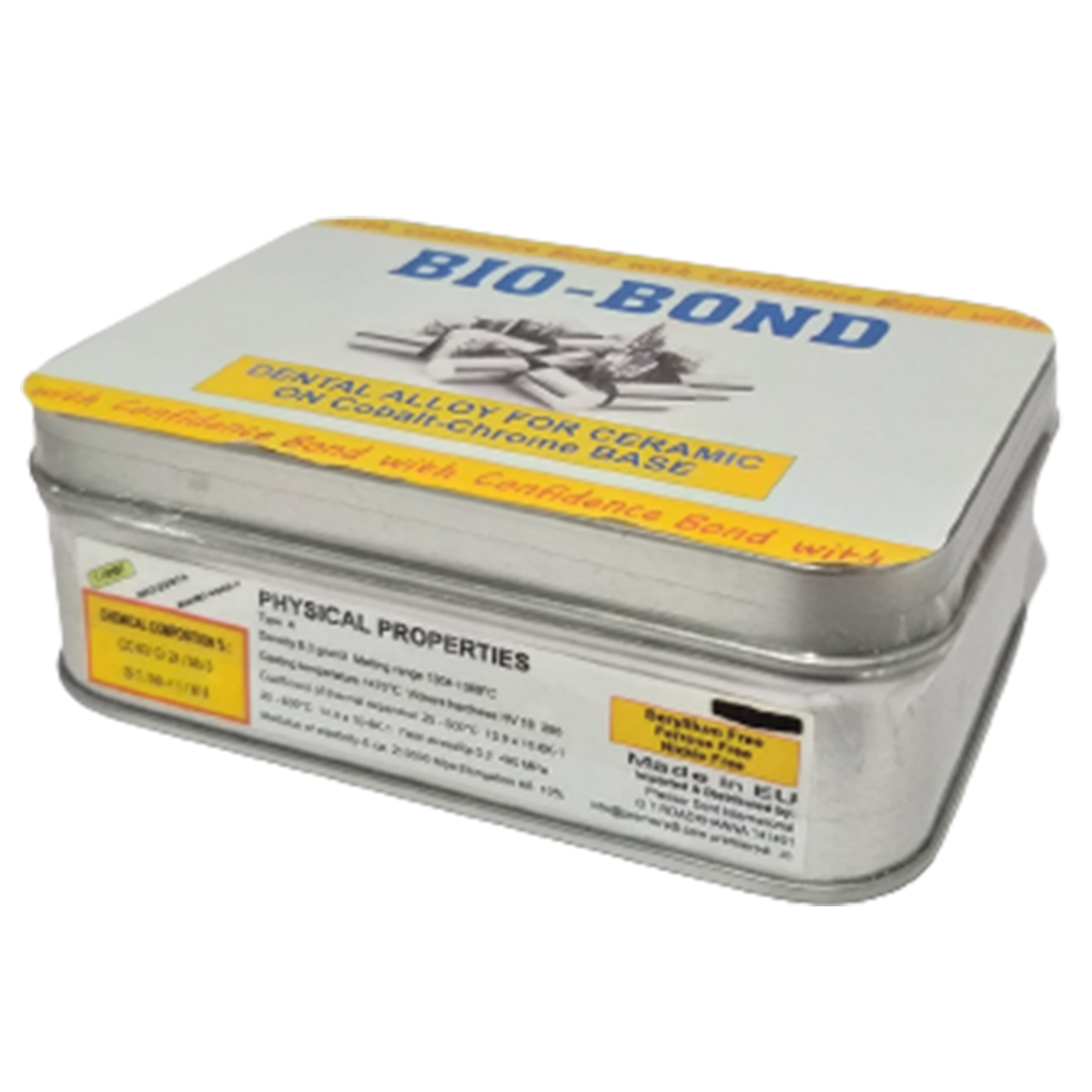 I-BOND NF is biocompatible non-precious cobalt-based casting alloy for metal-ceramic dental restorations. I-BOND NF contains no nickel, beryllium, cadmium and lead and fulfills the recommendations of the standards EN ISO 22674 and EN ISO 9693-1. The relatively low Vicker´s hardness of 285 (HV 10) leads to good and easy milling and grinding behaviour and gives perfect polished surfaces.